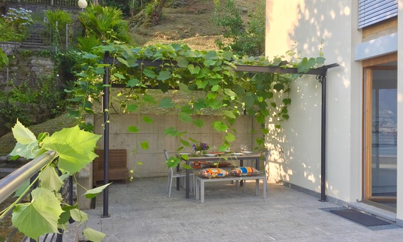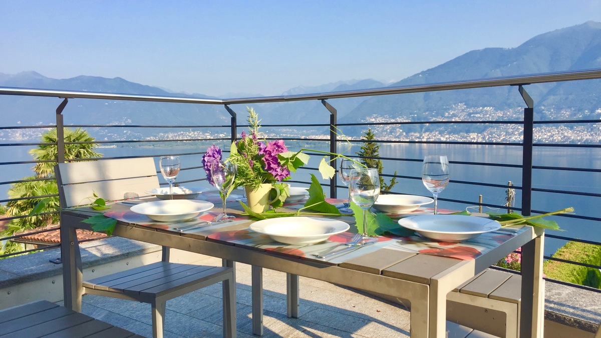 Auf der grossen Terrasse mit verschiednen Sitzmöglichkeiten geniessen Sie eine einmalige Aussicht auf den Lago Maggiore und die umliegenden Berge. Hier wird jeder Augenblick zum Genuss und die gemeinsamen Stunden mit Freunden und Familie zu einem unvergesslichen Erlebnis. Zum Haus gehört ebenfalls noch ein kleiner Gartenteil, der je nach Lust und Laune gerne im Sommer von den Gästen gemäht werden darf :-) Hier können Sie wunderbar unter dem Nuss- und Pflaumenbaum mit Blick auf den See oder den kleinen Naturteich im Garten entspannen.