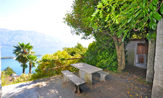 An erhöhter sonniger Lage, absolut ruhig und abseits von Strassenlärm in einer Sackgasse gelegen erreicht man dieses traditionelle Ferienhaus im Tessin über eine Treppe oder den zum Haus gehörenden Privatlift.