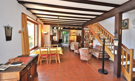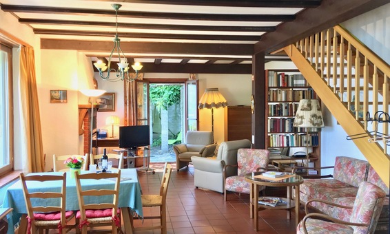 Großes Wohnzimmer/ Esszimmer mit Kamin und neuer Sitzgruppe, TV, Radio und WLAN.