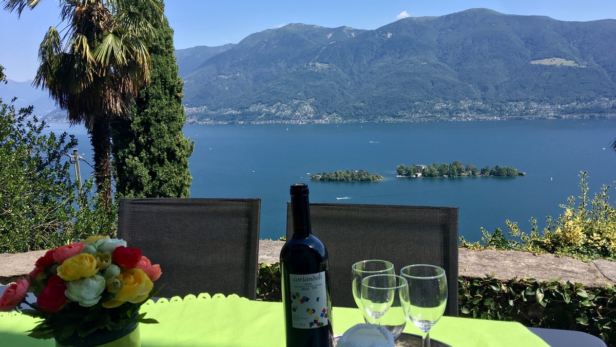 Lage und Umgebung: Das Tessiner Ferienhaus "Casa Lucertola" liegt in Ronco sopra Ascona, einer der schönsten und sonnigsten Bereiche im Tessin. Die Sicht auf den Lago Maggiore und die Brissago Inseln ist traumhaft schön. Das Ferienhaus ist zweckmässig eingerichtet und die Möblierung und Ausstattung sind traditionell gehalten. Ideal für Familien und Menschen, die Ruhe und Erholung suchen. Für Familien mit kleinen Kindern, der Hinweis, dass es verschiedene Terrassen und Treppen gibt, die nicht speziell für Kinder abgesichert sind. Hier muss bei kleinen Kindern besonders beaufsichtigt werden. Ihr Auto parken Sie bequem auf dem reservierten Parkplatz direkt beim Haus. Es gibt ausser der Treppe hinauf auch einen Personenlift mit dem Sie auch Gepäck oder Einkäufe zum Ferienhaus transportieren können.