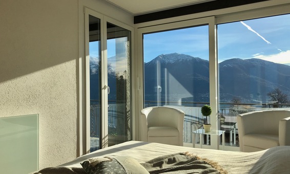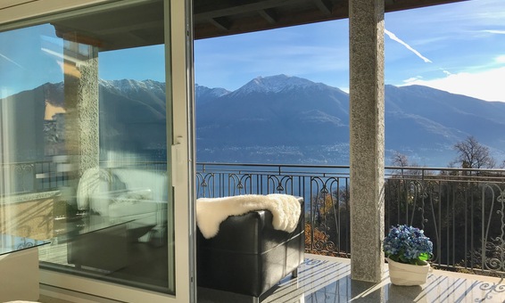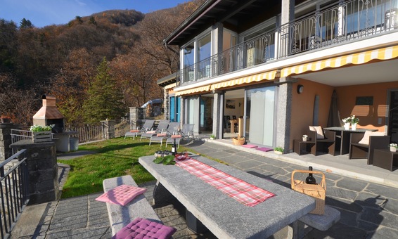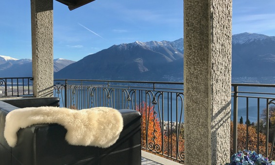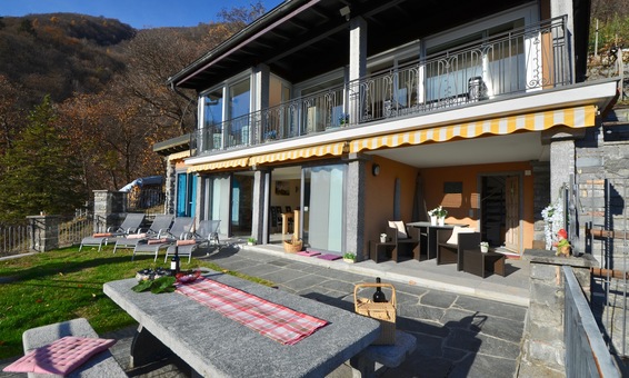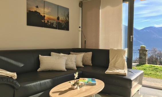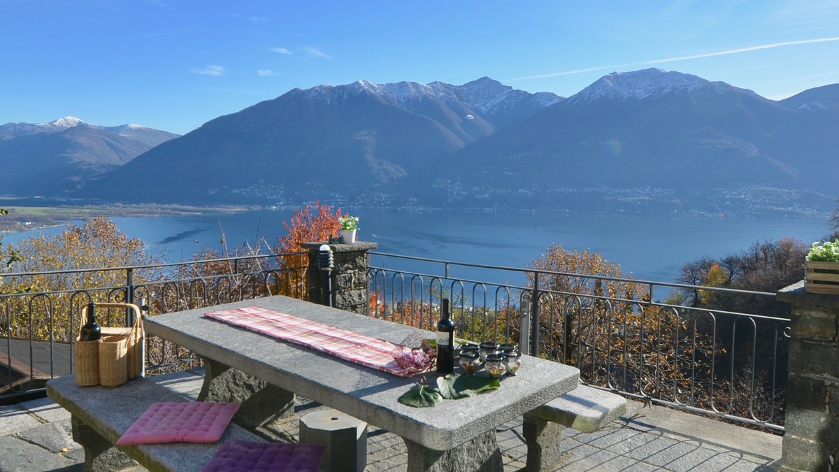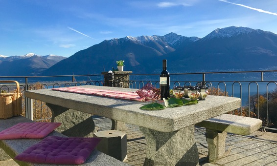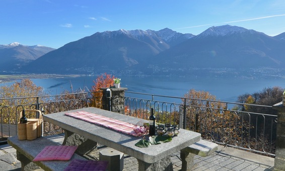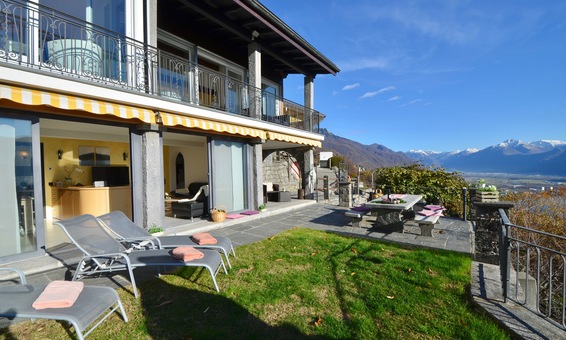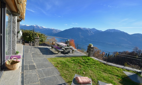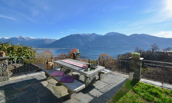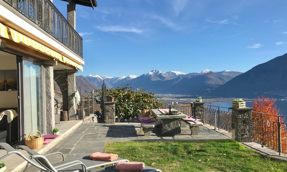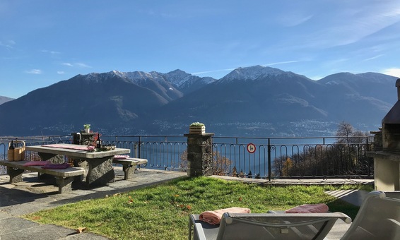 Ferienhaus "Casa Moorea 9494" in Brione s. Minusio - moderne Ausstattung - 180° Seesicht - Garten mit Grill und gemütlicher Sitzgarnitur in Granit - Hunde sind Willkommen