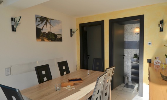 Unser Feriendomizil bietet ca.110 qm Wohnfläche, 2 Schlafzimmer, 2 Badezimmer, 1 Küche mit Kamin und Bistrotisch sowie einem grosszügigem Wohnbereich mit Essplatz für 6 Personen, Vorratsraum mit Wein/Regalen und Wasch-Trockenturm.