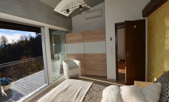 Schlafzimmer 2 mit Doppelbett, 2 Nachttischen | Kleiderschrank I Kamin I Klimaanlage I direkter Zugang auf den Balkon mit Outdoor-Sofa und 180° Seesicht