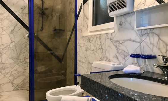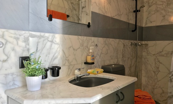 Modernes Duschbad in Marmor mit WC und Bidet