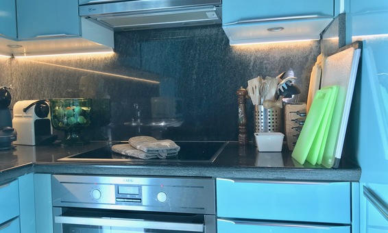 Als Ausstattung finden wir alle gängigen Gerätschaften. Kaffeemaschine (Nespresso), Toaster, Wasserkocher und ausreichend Geschirr, Gläser und Kochzubehör sind selbstverständlich vorhanden.