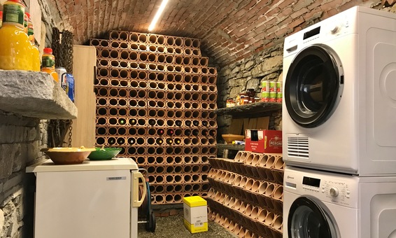 Vorratsraum mit Regalen und Wasch-Trockenturm