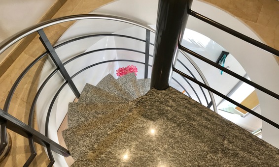 Aufgang zum Obergeschoss über die Wendeltreppe