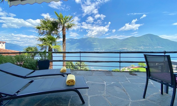 Die perfekt ausgestattete Ferienwohnung "Calebris Comfort" in Brissago mit grossem Gemeinschaftspool und einmalig schöner Seesicht verfügt über zwei grosszügige Schlafzimmer, eines davon mit direktem Ausgang auf die Terrasse mit herrlichster Sicht auf den Lago Maggiore und die Berge. Das modern eingerichtete Wohnzimmer, ebenfalls mit Ausgang auf die grosse Terrasse, bietet Ihnen neben dem schönen Essbereich einen gemütlichen Wohnbereich mit TV und Kamin. Hier wurde mit viel Liebe zum Detail von den Gastgebern ein kleines Ferienparadies geschaffen, in dem Sie sich sehr wohl fühlen werden.