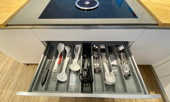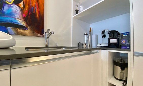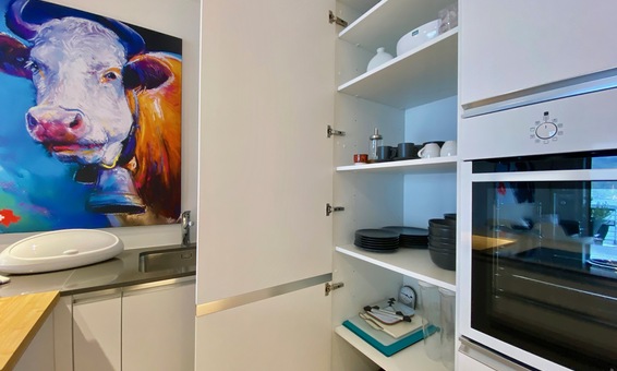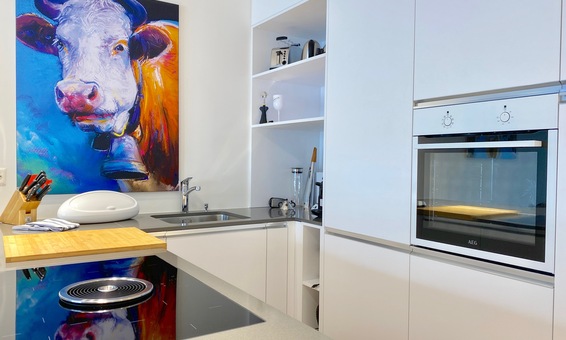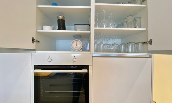 Küche: Kaffeemaschine, translation missing: de.tags.mixer, Toaster, Besteck, Gefrierfach, Mikrowelle, Kühlschrank, Geschirrspülmaschine, Geschirr, Backofen, Ceran/Keramikkochfeld