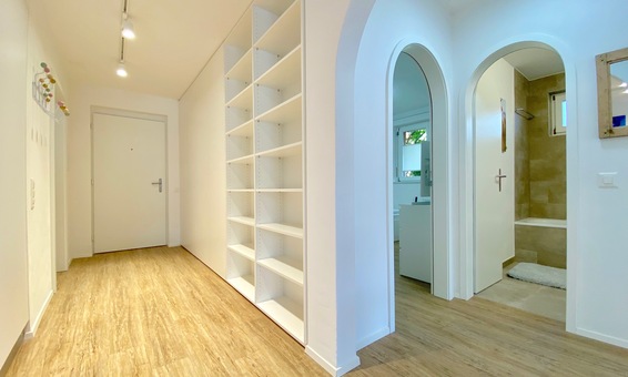 Im Garten dieser gepflegten Residenz befindet sich ein grosser Gemeinschaftspool (Unterhalt von Mai bis September, je nach Gemeindeentscheid) den Sie natürlich gerne benutzen dürfen. In der Garage gibt es einen reservierten Parkplatz für Ihr Fahrzeug.