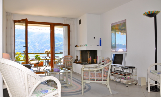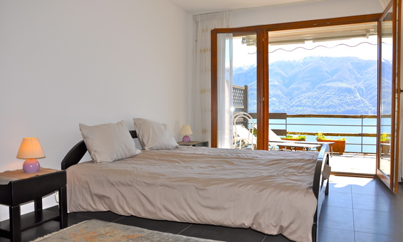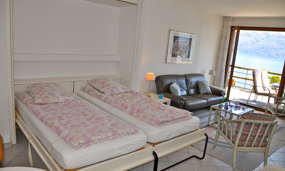 Unsere Ferienwohnung Calebris in Brissago mit grossem Pool und einmalig schöner Seesicht verfügt über ein grosszügiges Schlafzimmer mit Sicht auf den Lago Maggiore und die Berge. Das Wohnzimmer bietet Ihnen direkten Zugang zu der schönen Terrasse gegen den See. Des weiteren finden Sie im Wohnzimmer ein Wandklappbett für 2 Personen (bei Belegung mit 3 oder 4 Personen) einen offenen Kamin, sowie den Esszimmerbereich.