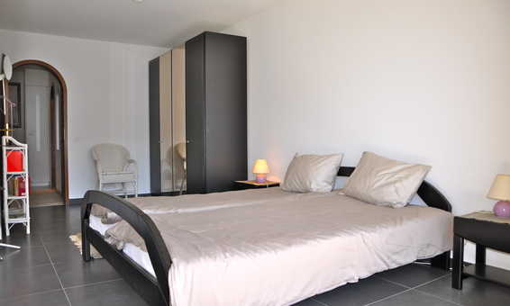 Schlafzimmer: Ein grosszügiges Schlafzimmer mit Doppelbett, Nachttischen und Leselampen | grosser Kleiderschrank | Rolläden | direkter Zugang zur Terrasse.
