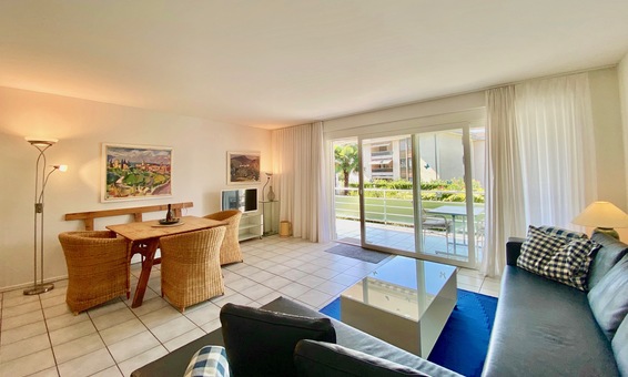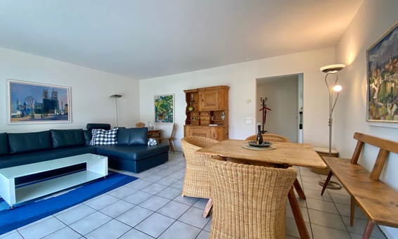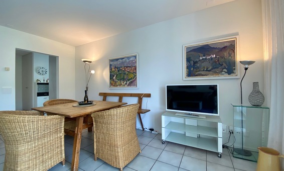 Der Eingangsbereich bietet Garderobe und Wandschränke sowie Ablageflächen, um z.B. Schlüssel zu deponieren. Im hellen Wohn- und Essbereich erwartet Sie eine grosszügige Sofalandschaft, Esstisch mit 4 Stühlen, Flatscreen TV-Geräte mit internationalen und deutschsprachigen Sendern und WLAN Internet (kostenlos). Auf die Terrase führen grosse Schiebefenster, wo Ihnen ein Sitzbereich mit Tisch und 4 Stühle sowie 2 gemütliche Liegen zur Verfügung stehen.