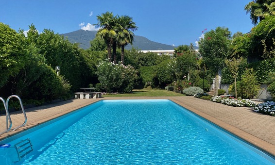 Zur gemeinsamen Nutzung steht ein grosszügiger Aussenpool (Sommerbetrieb) mit Liegewiese sowie Fitness, Sauna und Solarium zur Verfügung.