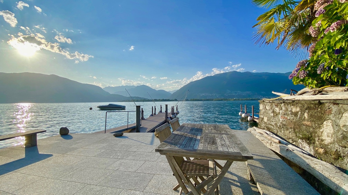 Lage und Umgebung: Die Ferienwohnung "Miralago" liegt in San Nazzaro, am Ostufer des Lago Maggiore. An absolut bevorzugter Lage mit Seeanstoss, eigenem Bootsliegplatz und privater Seeterrasse geniessen Sie ein elegantes Ambiente mit einem Mix aus Design & charmanter Gemütlichkeit.
