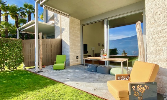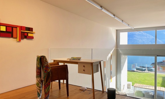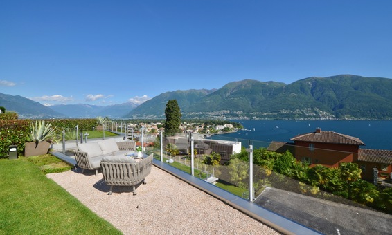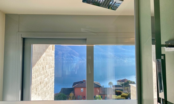 Diese modern augestattete Duplex-Wohnung "Residenza Rondonico" liegt in einem exklusiven Wohnquartier am Sonnenhang von Ascona und bietet, Dank der grossen Fensterfront, auch im Innenbereich eine traumhafte Sicht auf den Lago Maggiore. Alle Etagen sind über Treppen und auch mit einem Innenlift verbunden.