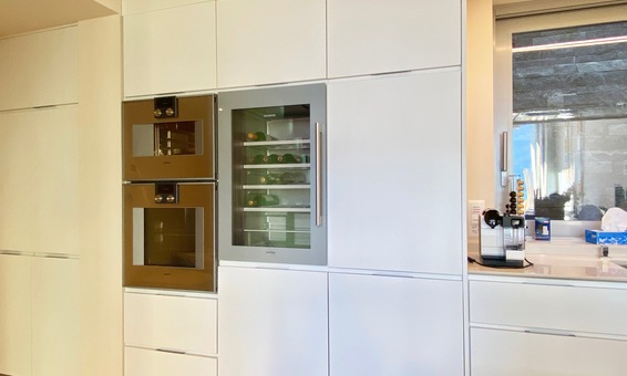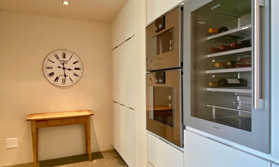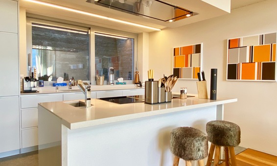 Küche: komplett ausgestattete Küche I Kochinsel mit integrierter Spüle I Induktionsherd I Backofen I Weinkühlschrank I Kühlschrank I Gefrierschrank I Wasserkocher I Toaster I Kaffeemaschine (Nespresso)