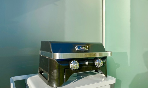 Aussenbereich: Garage, Garten, Überdachter Sitzbereich, 6 Gartenstühle, 4 Liegen, Gasgrill im Freien