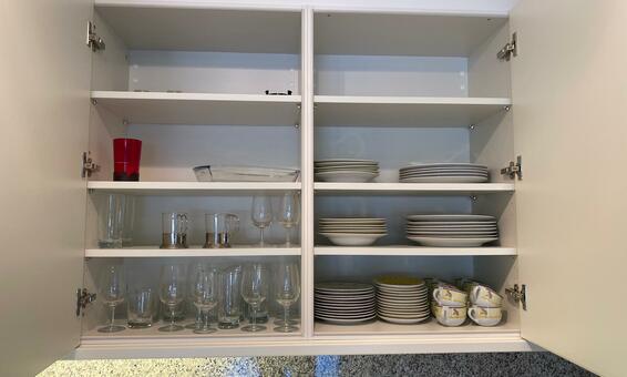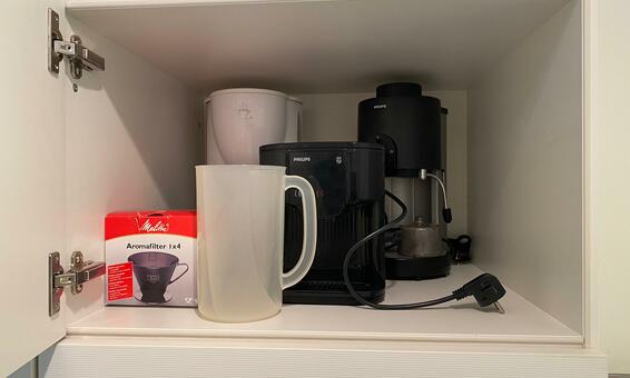 Küche: Kühlschrank, Geschirr, Kaffeemaschine, Gefrierfach, Toaster, Geschirrspülmaschine, Ceran/Keramikkochfeld, Besteck, Backofen