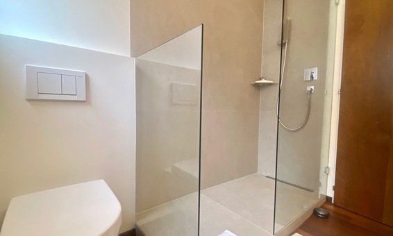 Badezimmer 1: Dusche, WC, Waschtisch mit Stauraum, Haartrockner