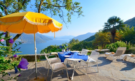 Lage und Umgebung: Das Ferienhaus " Casa Saudade " liegt in Brissago einer der schönsten und sonnigsten Lagen im Tessin. Die Sicht auf den Lago Maggiore bist weit nach Italien ist traumhaft schön. Das Ferienhaus ist zweckmässig eingerichtet und die Möblierung und Ausstattung sind traditionell gehalten. Ideal für Familien und Menschen, die Ruhe und Erholung vom Alltag suchen. Für Familien mit kleinen Kindern ist es wichtig zu wissen, dass es verschiedene Terrassen und Treppen gibt, die nicht speziell für Kinder abgesichert sind. Unsere Erfahrung zeigt aber, dass das Rustico für Kleinkinder bis 5 Jahren nicht unbedingt geeignet ist. Ihr Auto parken Sie bequem auf dem Gelände direkt beim Haus.