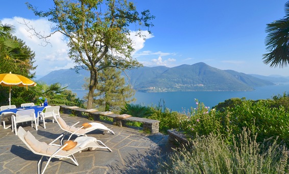 Grosse Terrasse mit herrlichster Seesicht, Sitzmöbeln und Liegestühlen. Weitere Terrassen/Sitzplätze finden Sie im Garten und am Poolbereich.
