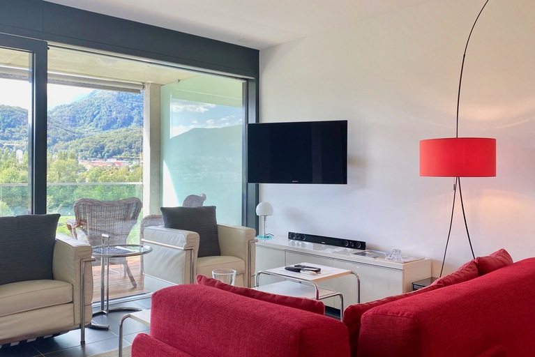 Die perfekt ausgestattete Ferienwohnung "Piccolo Paradiso" in Orselina mit grossem Gemeinschaftspool und einmalig schöner Seesicht verfügt über zwei grosszügige Schlafzimmer und zwei Badezimmer. Das modern eingerichtete Wohn-Esszimmer mit offener Küche und Ausgang auf den grossen Balkon mit ...