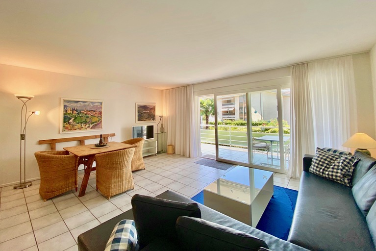 Es erwartet Sie eine wunderschön gestaltete grosse 2.5-Zimmer Gartenwohnung mit moderner, hochwertiger Möblierung und Dekorationen, die 2020 liebevoll von ihrer Besitzerin für Feriengäste eingerichtet wurde. Wohn- und Schlafzimmer sind mit Aircondition ausgestattet.