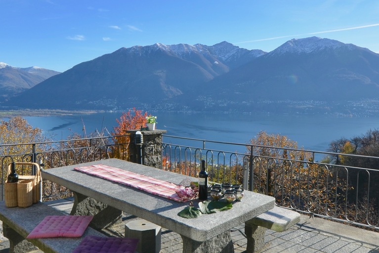 Ferienhaus "Casa Moorea 9494" in Brione s. Minusio - moderne Ausstattung - 180° Seesicht - Garten mit Grill und gemütlicher Sitzgarnitur in Granit - Hunde sind Willkommen