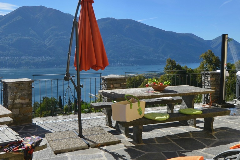 Ferienhaus in Brione s. Minusio - tolle Ausstattung - barrierefrei - wunderschöne Seesicht - Terrasse mit Jacuzzi und Solardusche - Anschluss f. Elektrofahrzeuge